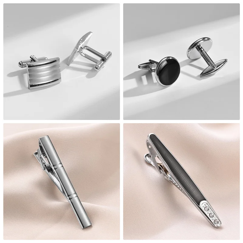 4 Sets Cufflinks For Mens Tie Clips & Cufflinks Set With Box Wedding Guests Gifts Man Shirt Cufflink Pisa Ties Luxury Men's Gift